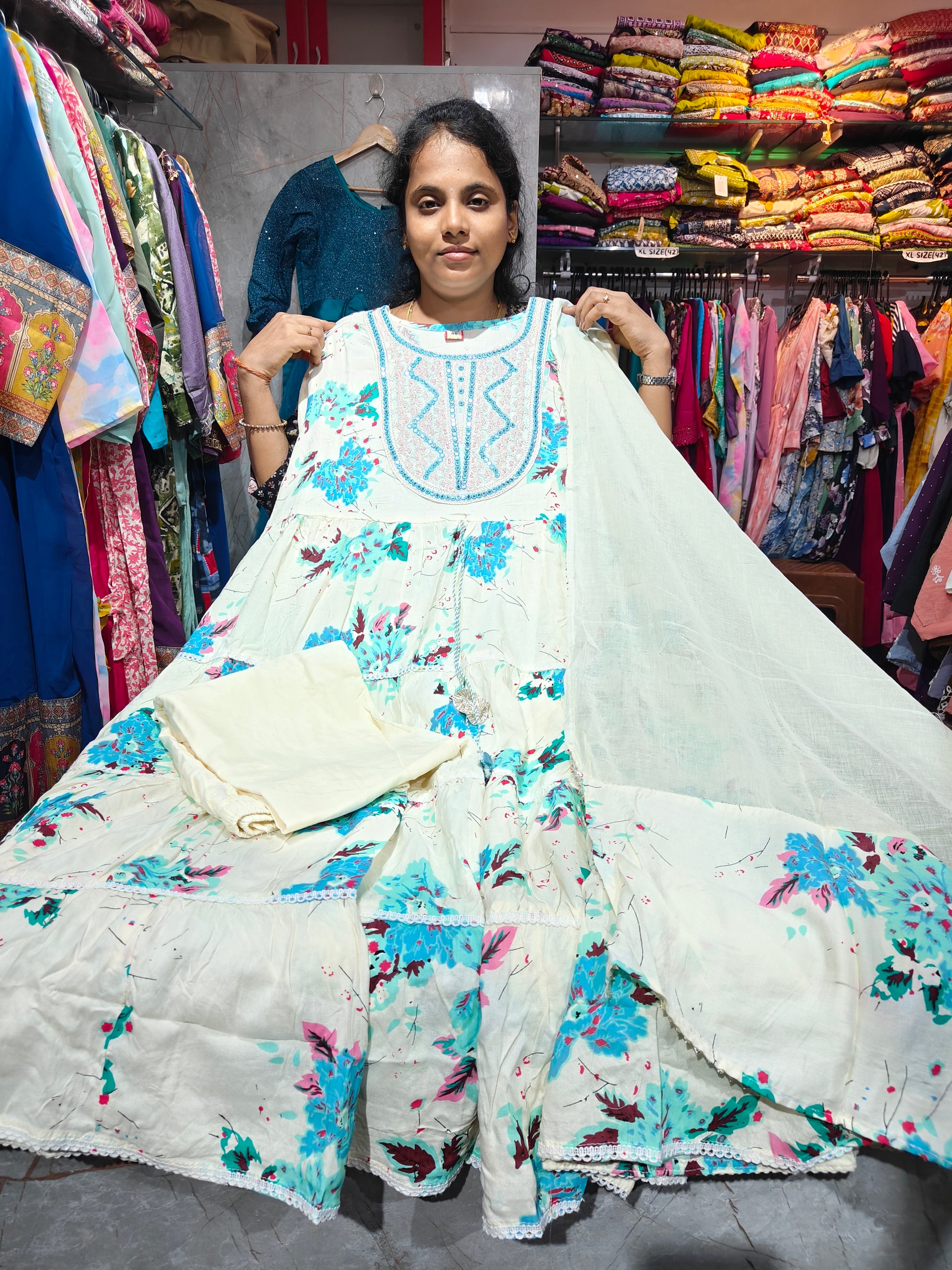 Anarkali Set with Pant & Shawl – Half White | 3XL to 6XL – ₹799 | ANA799