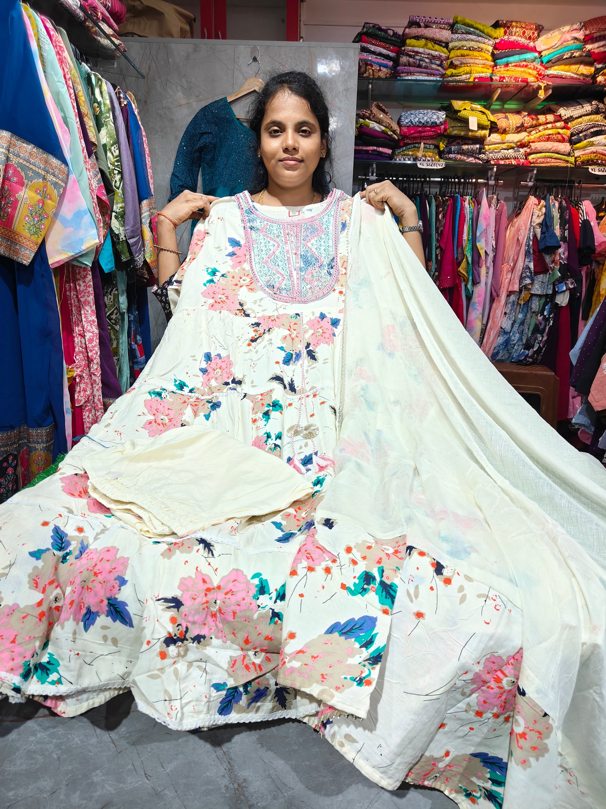 Anarkali Set with Pant & Shawl – Half White | 3XL to 6XL – ₹799 | ANA799