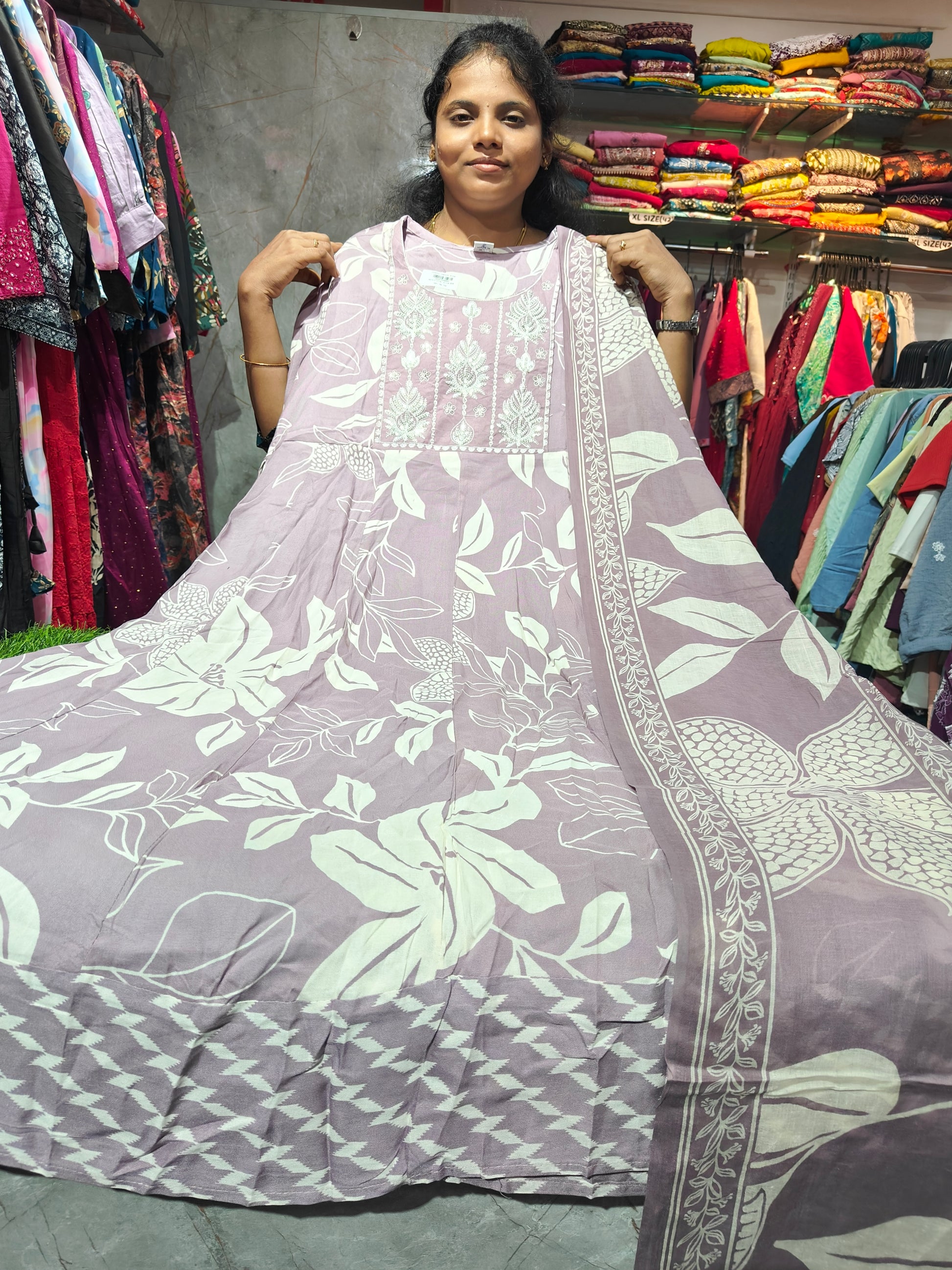 Upgrade your ethnic wardrobe with our Anarkali Top & Shawl Set, made from premium Cotton Rayon fabric for all-day comfort. Perfect for festive wear, office styling, and casual fashion, this elegant outfit blends comfort with grace. The matching shawl adds a stylish finishing touch.