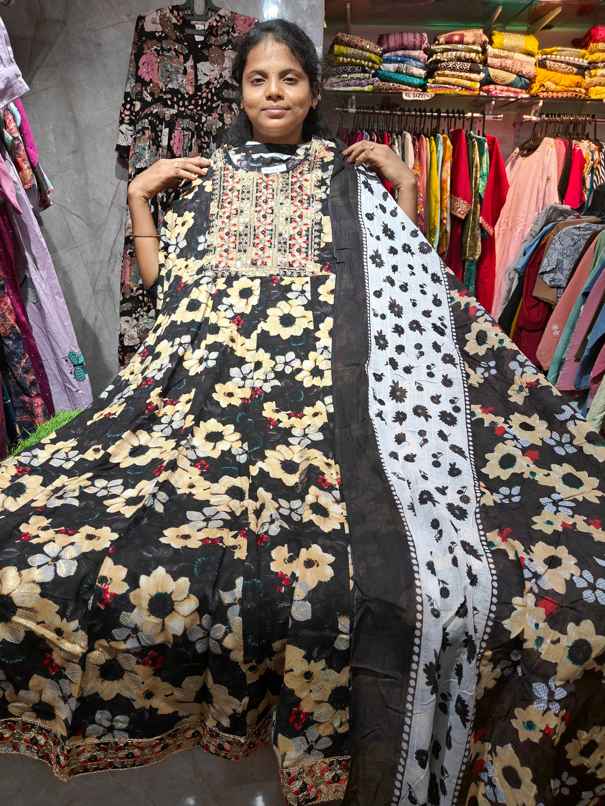 Upgrade your ethnic wardrobe with our Anarkali Top & Shawl Set, made from premium Cotton Rayon fabric for all-day comfort. Perfect for festive wear, office styling, and casual fashion, this elegant outfit blends comfort with grace. The matching shawl adds a stylish finishing touch.