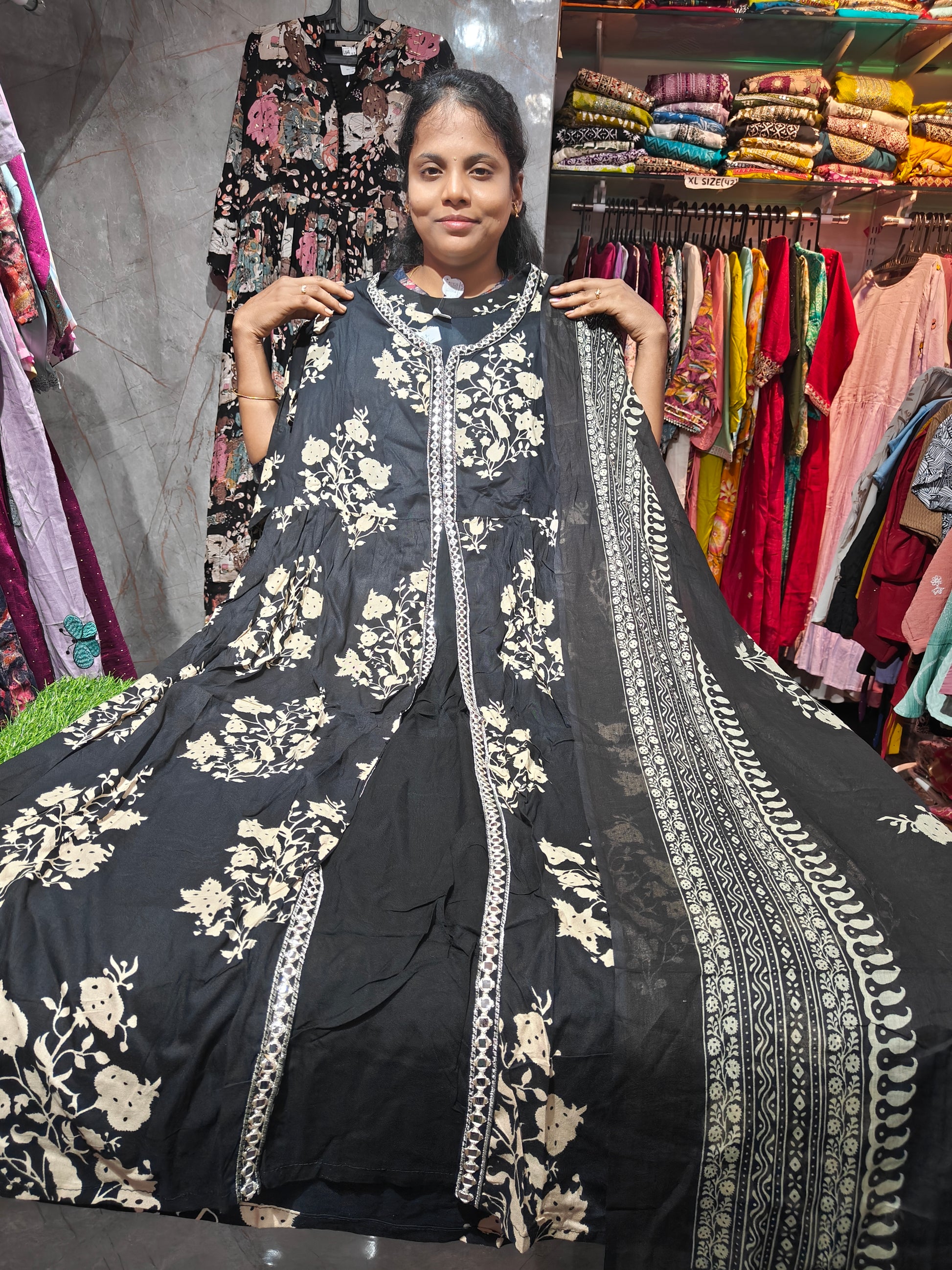 Upgrade your ethnic wardrobe with our Anarkali Top & Shawl Set, made from premium Cotton Rayon fabric for all-day comfort. Perfect for festive wear, office styling, and casual fashion, this elegant outfit blends comfort with grace. The matching shawl adds a stylish finishing touch.