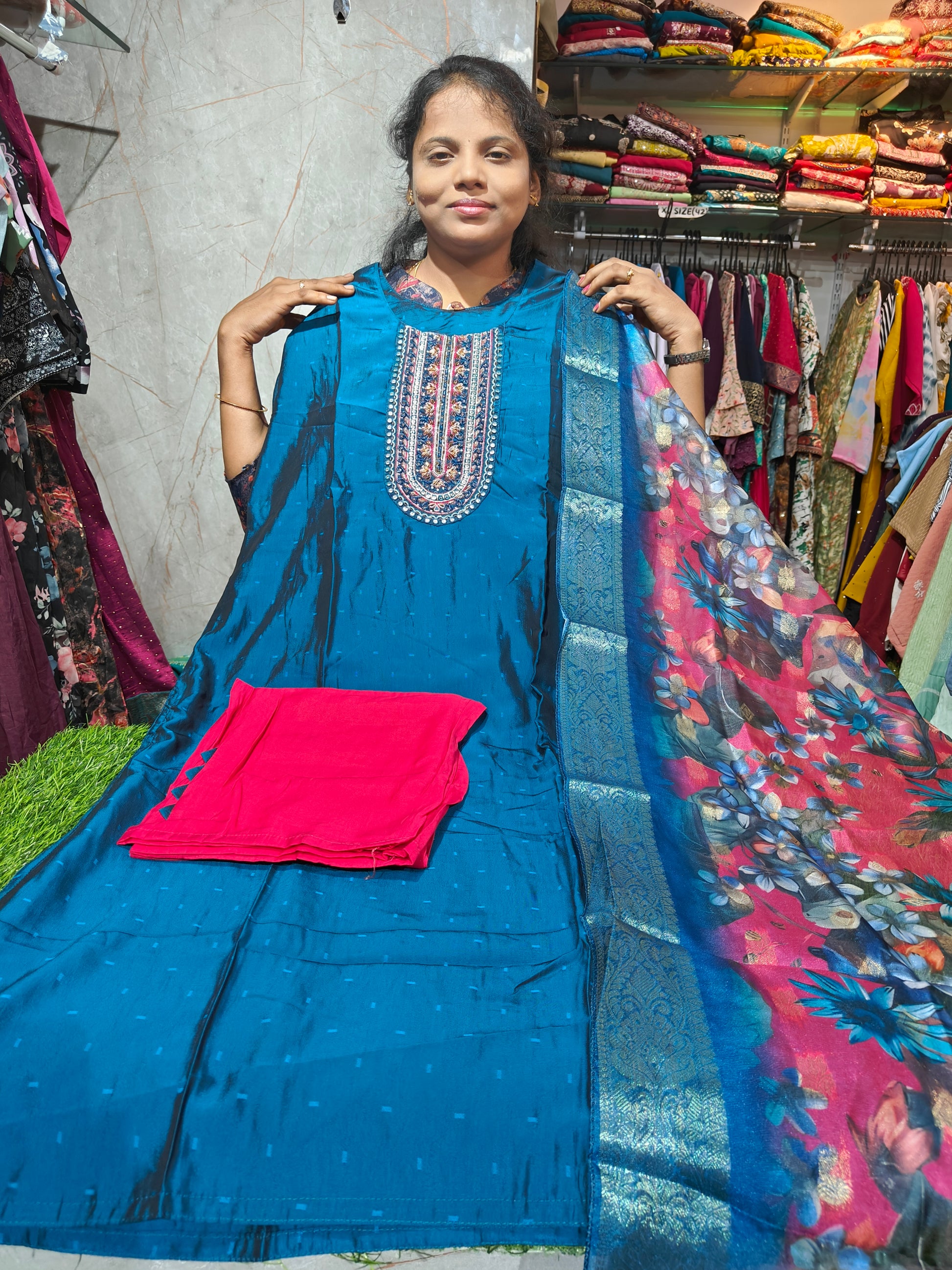 Set Includes: Kurti Top, Digital Print Shawl, Matching Bottom