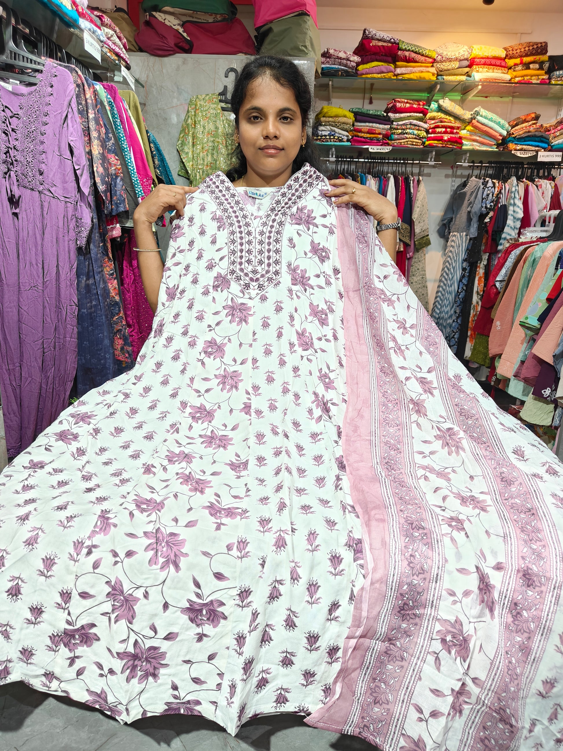 Discover timeless elegance with our KTS649 Plus Size Anarkali Kurti with Shawl, tailored in premium Rayon Cotton fabric for unmatched comfort and style. Designed especially for plus-size women, this Anarkali kurti is paired with a graceful shawl, making it the perfect choice for festive occasions, office wear, or casual gatherings.