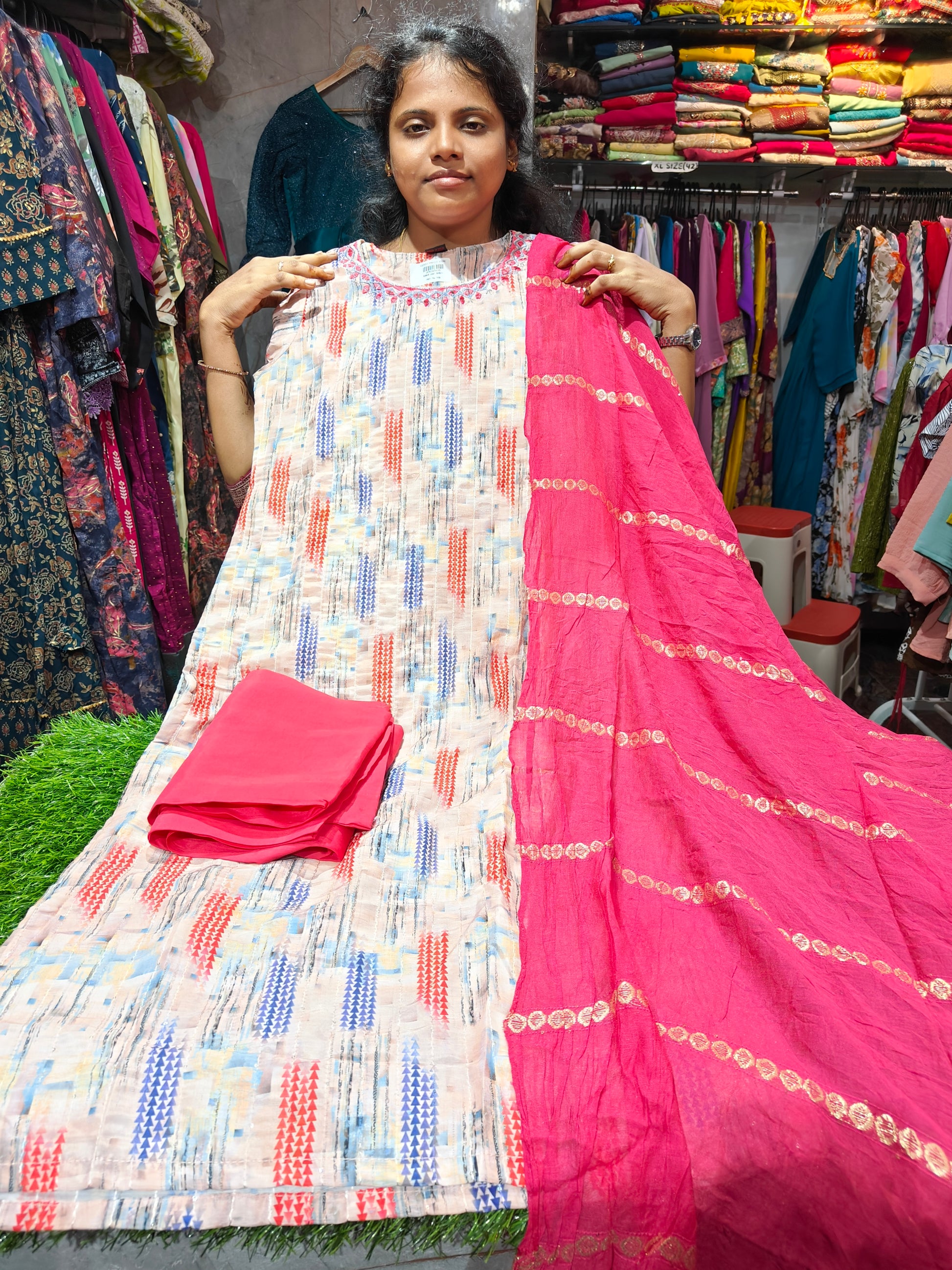 Upgrade your ethnic wardrobe with this stylish budget-friendly partywear salwar set. Designed with comfort and elegance in mind, this outfit is perfect for festive occasions, family gatherings, or casual functions.