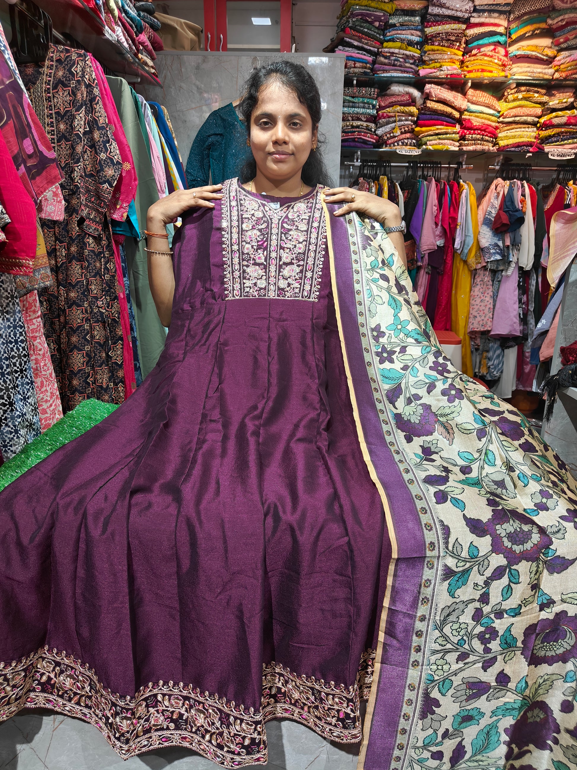 Add elegance to your wardrobe with this premium silk Anarkali kurti PCA799 featuring a stylish panel-cut design. Crafted for plus-size women, this kurti offers a perfect blend of comfort, grace, and festive flair.