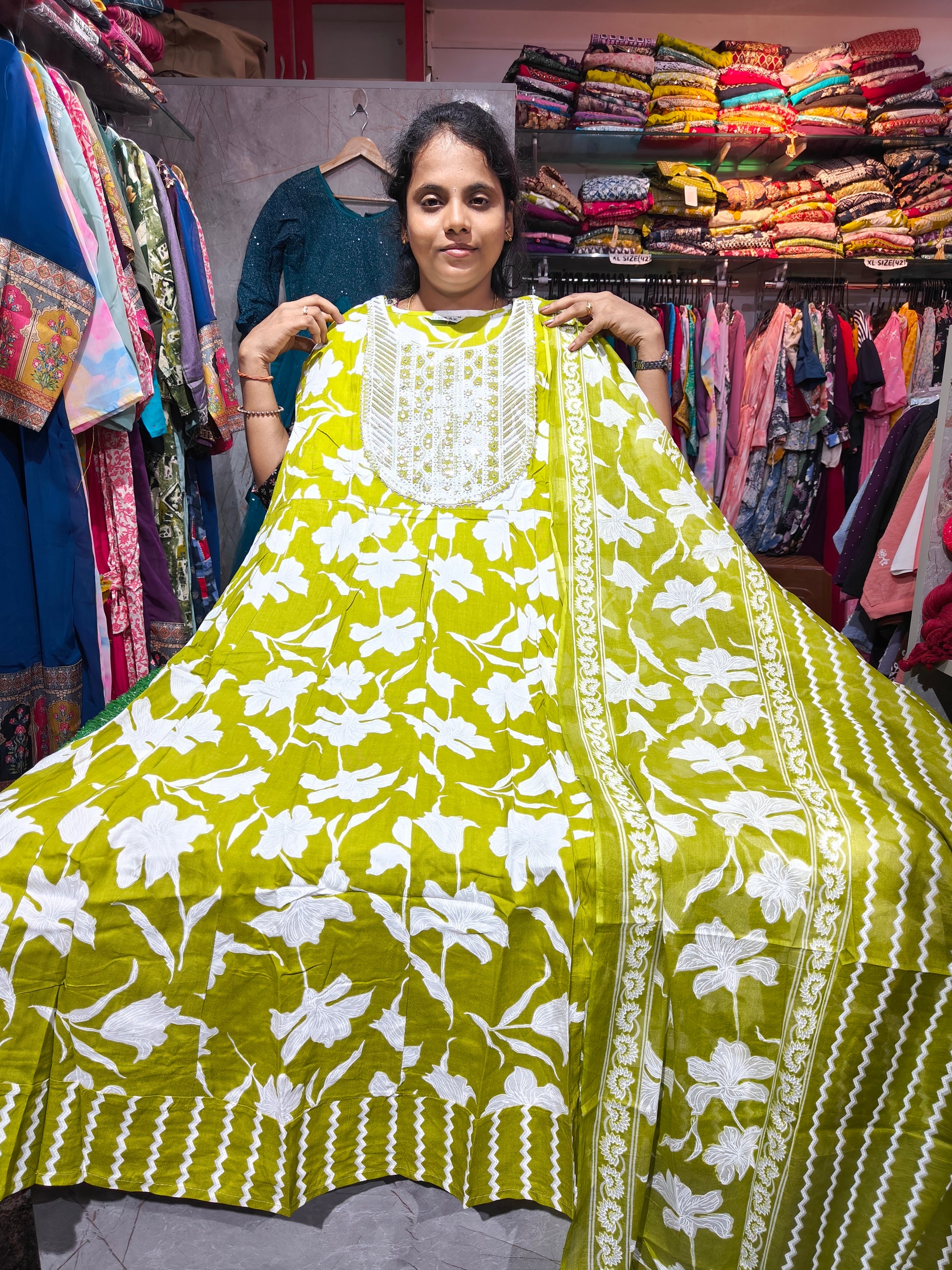 Elegant Rayon Cotton Anarkali Kurti with Dupatta, perfect for festive and casual wear.