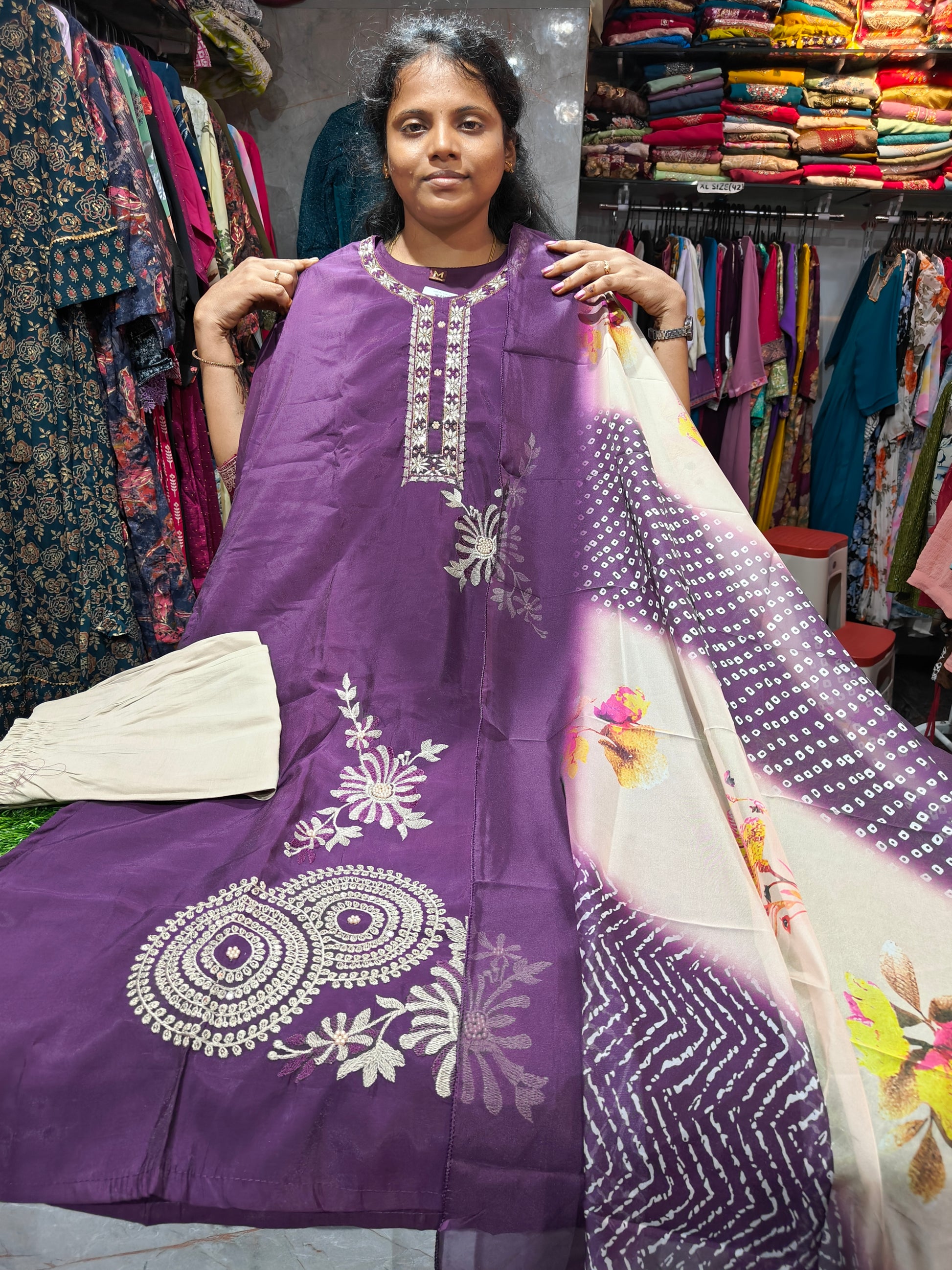 Silk Partywear Salwar Set – MQ749 | Handwork & Thread Work Design | Sizes M to XXL | Price ₹749