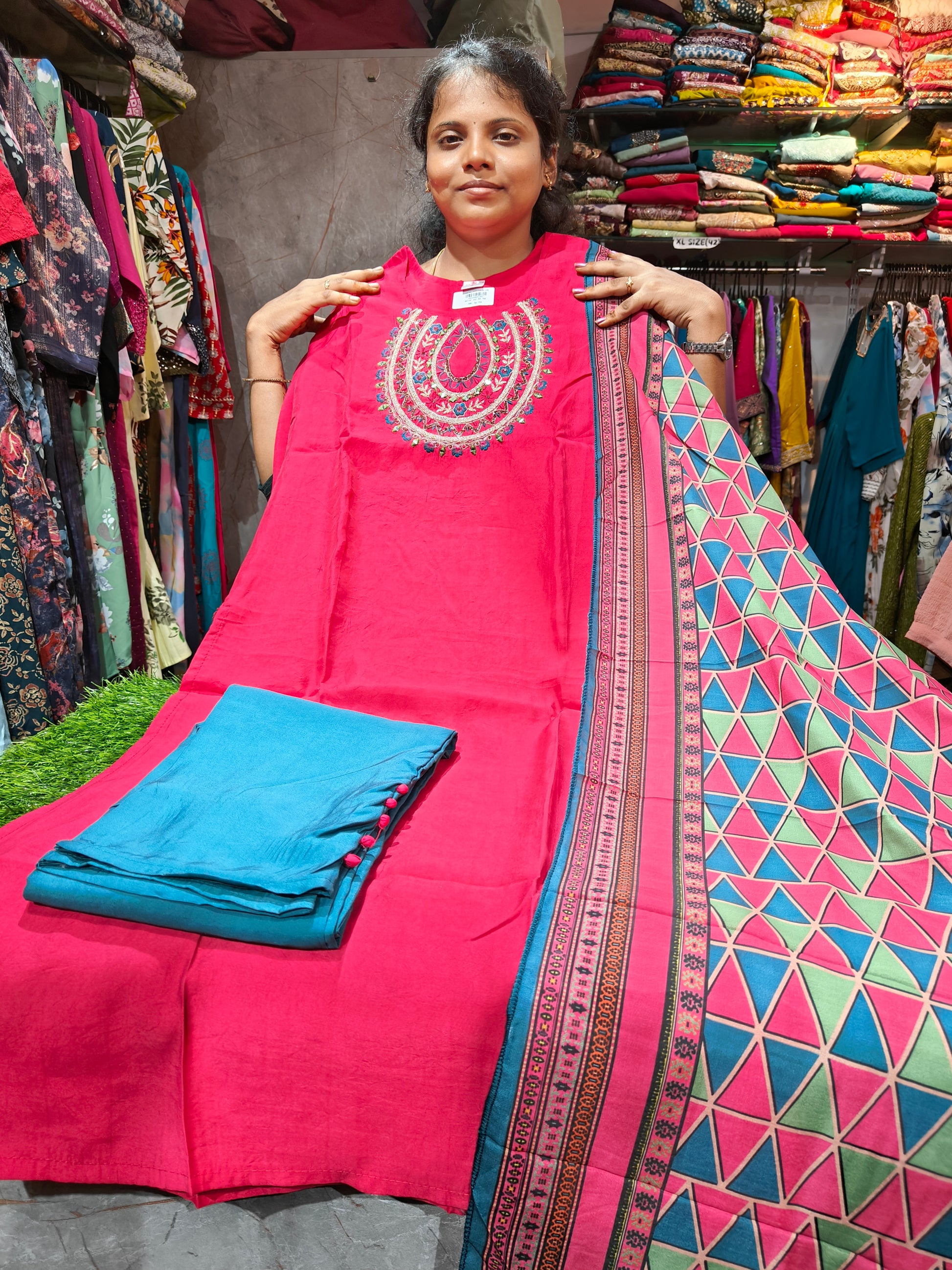 Silk Partywear Salwar Set with Grand Shawl | Elegant Ethnic Wear | Sizes M to XXL β βΉ675