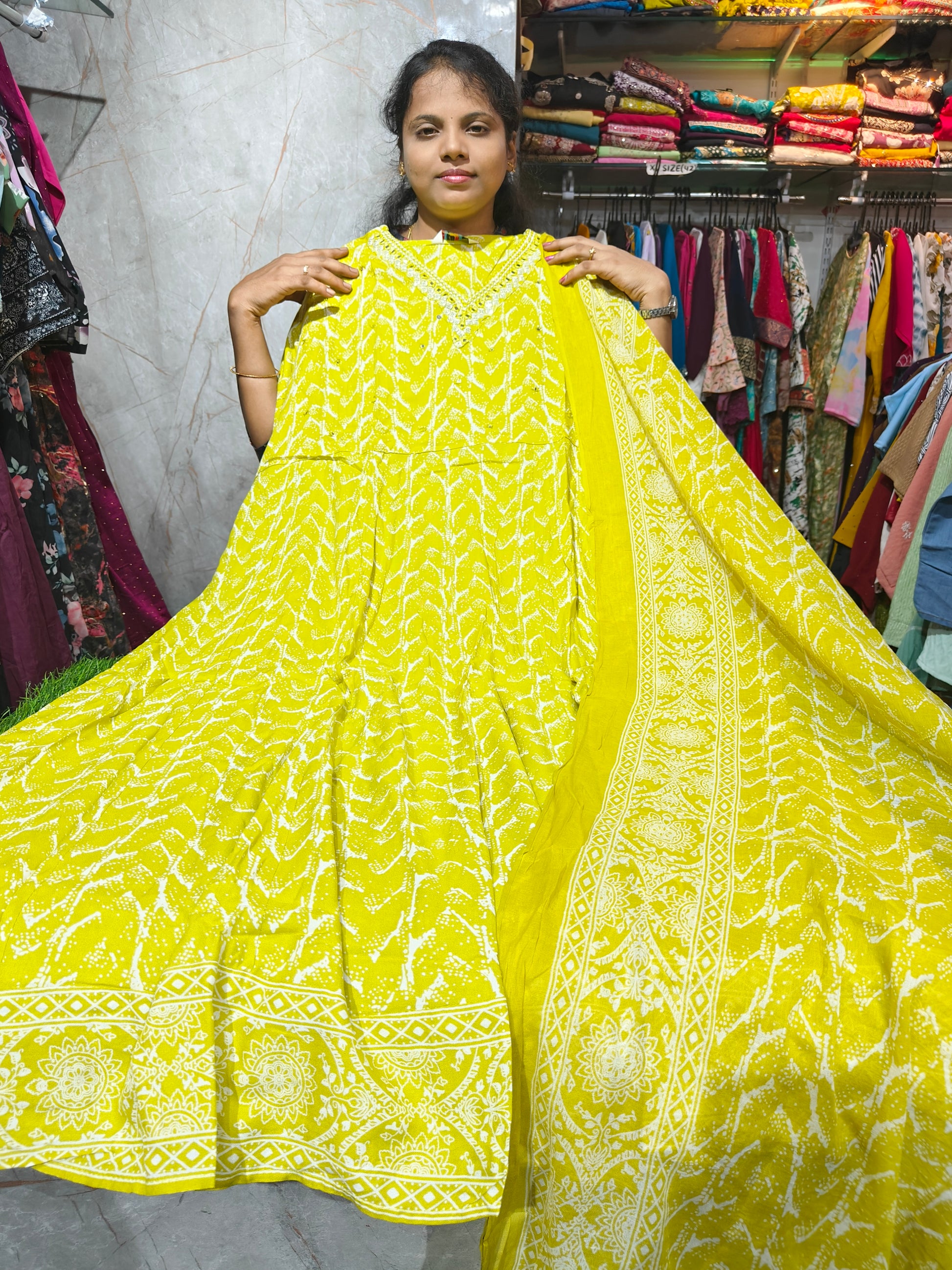 V-Neck Anarkali Kurti with Dupatta Set – Rayon Cotton – Plus Size 4XL to 6XL – PSTS2